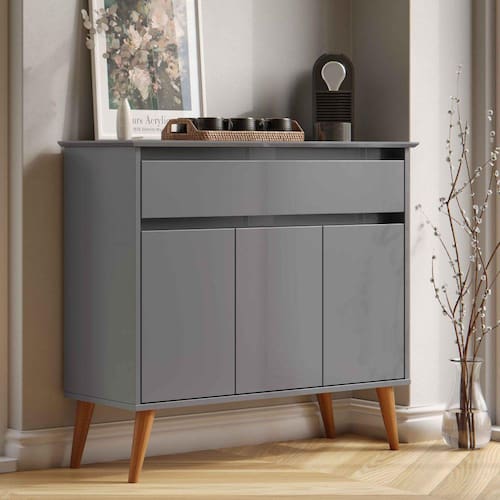 Aparador Buffet Sala Zeus 3 Portas 1 Gaveta Cinza - Rede Móveis