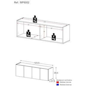 Altura: 39,5cm | Largura: 123,5cm | Profundidade: 31,5cm