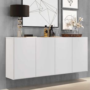 O Aparador Buffet 4 Portas Suspenso Veneza Multimóveis é produzido em MDP com acabamento acetinado (cerca de 20% de brilho), que garante maior durabilidade, facilidade na limpeza, além de um acabamento superior. Com 4 portas, possui um excelente espaço interno para organizar seus pertences (as prateleiras internas suportam 5 Kg cada e o tampo 10 Kg) e ainda acompanha kit para ser montado de forma suspensa, conforme a altura que você quiser do chão. Seu design minimalista, torna o móvel muito versátil, podendo ser utilizado de diversas maneiras e em qualquer ambiente.