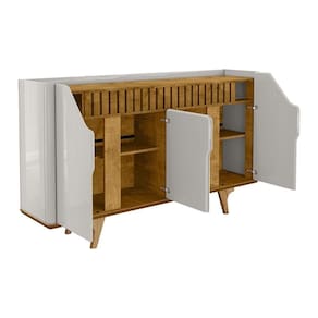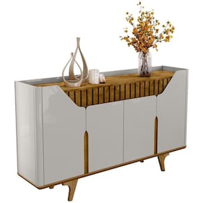 O Aparador Tâmisa é o móvel perfeito para sua casa! Ele possui design moderno que mescla suas curvas nas portas e laterais com detalhe em ripado real. Ele conta com Base em MDF de 25mm chanfrada em ângulo, portas em MDF chanfrada com design único que proporciona ao produto beleza inigualável. Cantos curvos feitos em MDF, amplo tampo e prateleira ajustável. Pés em madeira maciça que garantem ainda mais resistência e qualidade ao produto.