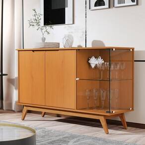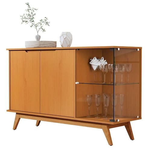 Com portas bem distribuídas, incluindo uma de vidro com prateleira elegante, é ideal para organizar utensílios e expor taças com estilo.