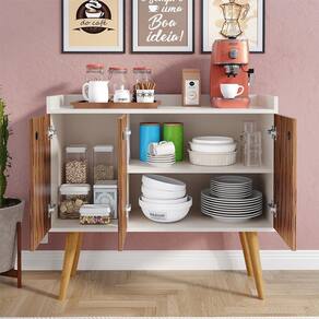 O Aparador Buffet Wood Prime foi produzido pensando em você que busca por um móvel versátil e moderno. Ele conta com 3 portas e dispõe de um amplo espaçamento interno, incluindo uma prateleira organizadora, ideal para armazenar utensílios, deixando tudo em seu devido lugar. Também conta com um amplo tampo, perfeito para acomodar peças decorativas e montar seu cantinho do café. Seus pés são modelo palito produzidos em madeira, aumentando a durabilidade do produto. Garanta já seu Buffet Wood Prime e deixe sua sala ainda mais elegante e organizada.