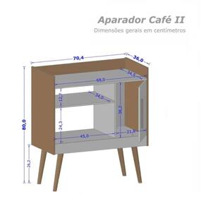 O Aparador Café II-Móveis Bechara , foi desenvolvido pensando em você, o amante do café. Compacto e extremamente funcional, ele conta com nichos ideais para acomodar os mais variados tipos de objetos, desde xícaras, canecas, à potes com ingredientes. Elaborado em MDP ele conta com pés de madeira maciça com feltro protetor, garantindo com isso ainda mais qualidade e resistência ao produto. Com tantas qualidades o Aparador Café é perfeito para sua sala ou escritório!Dimensões do Produto Montado:Altura: 80 cmLargura: 70,40 cmProfundidade: 36 cmObservações:- Possui 1 Prateleira- Possui 3 Nichos- Possui 1 Porta- Possui 4 pés de madeira maciçaMarca: Bechara MóveisModelo: CaféReferência: 2075733WATENÇÃO: Não nos responsabilizamos pela montagem deste produto. Aconselhamos a contratação de um profissional.
