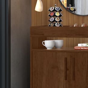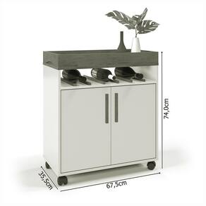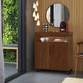 O Aparador Café Plus vem em uma nova versão com rodízios. Um produto exclusivo Ofertamo, e com características próprias. Ótima opção para compor seu cantinho do café, seus espaços permitem uma melhor acomodação de utensílios como cafeteiras, potes, xícaras ou objetos de decoração. Destaca-se por ser um móvel multifuncional, para você que adora modificar os ambientes da casa, podendo também ser utilizado como aparador drink. É produzido em MDP de 12mm, possui adega opcional para até sete garrafas, bandeja fixa, 2 portas e sistema de rodízios, facilitando sua locomoção caso seja necessário. É um móvel surpreendente!