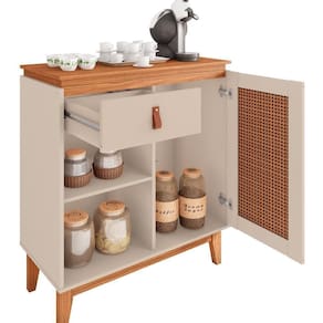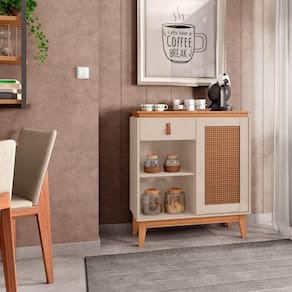 A Casa D Móveis pensando em trazer mais qualidade para a sua casa, elaborou esse lindo Aparador Café Rubi, com design moderno e sofisticado agregando charme e beleza ao ambiente. Ele conta com estrutura em MDP e pés em madeira maciça com feltro, garantindo maior durabilidade do produto. Ele contém uma gaveta de amplo espaço interno com corrediça telescópicas, facilitando sua abertura sem enrosco. O Aparador Café Rubi irá agregar muito mais charme e requinte à sua sala!. Ele possui amplo espaço interno que irá acomodar perfeitamente qualquer tipo de objeto.