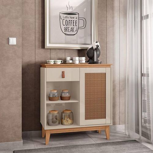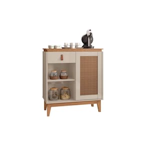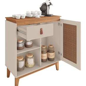 O Aparador Café Rubi chegou para proporcionar ao consumidor, diferencial! Flexibilidade no uso, ele permite ser usado para dividir ambientes. Inovador e com design vintage, ele chegou proporcionando qualidade e conforto para o consumidor, cheio de estilo, compacto e com design moderno, ele facilitará sua organização embelezando ainda mais sua espaço! Porta moldurada com exclusiva pintura 3D palhinha, e com sistema push-open(Fecho-toque). Contém 1 Gaveta com amplo espaço com corrediças telescópicas e puxador de alça de couro ecológico. Pés em madeira maciça com feltro, acabamento envernizado. Acabamento: Pintura UV Acabamento da Gaveta: Pintura UV Acabamento da Porta: Pintura UV Acabamento da Prateleira: Pintura UV Acabamento dos Pés: Verniz Altura dos Pés: 22 cm Ambiente Principal: Sala de Estar Complexidade da Montagem: Baixa: pode ser montado por uma pessoa sozinha Cor: Off White/Noce Cor do Produto: Off White/Noce Escala de Brilho: Semi-Brilho Escala de Brilho da Gaveta: Semi-Brilho Escala de Brilho da Porta: Semi-Brilho Escala de Brilho da Prateleira: Semi-Brilho Gaveta com Chave: Não Itens Inclusos: 1 Aparador, Kit Ferragens e Manual de Montagem Linha ou Coleção: Versátile 2022 Manual de Montagem e Instalação: https://cdn2.madeiramadeira.com.br/atributo/casa-d/858485-011074-aparador-cafe-rubi-404389000.pdf Material da Gaveta: MDF/MDP Material da Porta: MDF/MDP Material da Prateleira: MDP Material do Puxador da Gaveta: Couro Material dos Pés: Madeira Maciça Material Principal: MDF/MDP Necessita Montagem: Sim Origem do Produto: Nacional Pés Reguláveis: Não Peso: 21,3 kg Peso Máximo por Gaveta: 5 kg Peso Máximo por Prateleira: 5 kg Possui Adega: Não Possui Bandeja: Não Possui Possui Espelho: Não Possui Gavetas: 01 Possui Pés: 04 Possui Portas: 01 Possui Prateleiras: 01 Possui Rodízio: Não Possui Vidro: Não Recomendações de Uso, Manutenção e Limpeza: Recomenda-se limpar o produto com flanela ou pano macio seco, não utilizar produtos abrasivos, desengordurantes, álcool ou solvente. Mantê-lo em lugar livre de umidade e/ou exposição direta ao sol. Sapatas Niveladoras: Não Sistema de Montagem: Parafusos, Minifix, Cavilhas e Pregos Suporta Até (kg): 0 kg Tamanho: Tipo de Corrediça da Gaveta: Metálica Telescópica Tipo de Dobradiça/Corrediça da Porta: Metálica Tipo de Madeira Maciça dos Pés: Pinus Tipo de Porta: Bater Tipo de Puxador da Gaveta: Externo Tipo de Puxador da Porta: Não Possui - Abertura por Fecho Toque