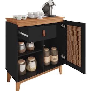 Flexibilidade no uso, ele permite ser utilizado para dividir ambientes. Inovador e com design vintage, ele chegou proporcionando qualidade e conforto para o consumidor, cheio de estilo, compacto e com design moderno, ele facilitará sua organização embelezando ainda mais sua espaço! Porta moldurada com exclusiva pintura 3D palhinha, e com sistema push-open(Fecho-toque). Contém 1 Gaveta com amplo espaço com corrediças telescópicas e puxador de alça de couro ecológico. Pés em madeira maciça com feltro, acabamento envernizado.