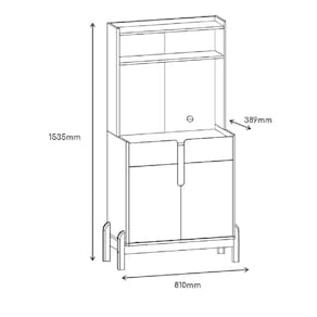 Características: Laterais, painel e base em MDF 15mm Tampo e prateleiras MDP 15mm 2 Portas Dobradiças com sistema Soft Close 2 Gavetas Corrediças telescópicas 4 Prateleiras Pés de madeira maciça Portas usinadas com detalhe curvo