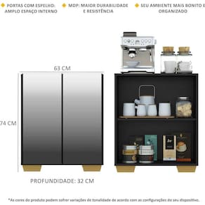 O Aparador Cantinho do Café com Espelho e Pés Quadrados 2 Portas Multimóveis é produzido em MDP com acabamento acetinado (cerca de 20% de brilho), que garante maior durabilidade, facilidade na limpeza, além de um acabamento superior. Com 2 portas, possui um excelente espaço interno para organizar louças, bebidas e demais objetos (a prateleira interna suporta 8 Kg e o tampo 9 Kg). Os pés quadrados, em polipropileno, facilitam na hora da limpeza. Os detalhes com espelhos nas portas deixam o móvel mais requintado, criando um ambiente moderno e charmoso. Os espelhos são de vidro (o que evita que a imagem fique distorcida) e lapidados, ou seja, passam por um processo para que as bordas não fiquem cortantes, o que garante maior segurança. Os amantes de café poderão deixar seu cantinho mais prático e aconchegante para curtir os melhores momentos com os amigos e família, saboreando um delicioso cafezinho.