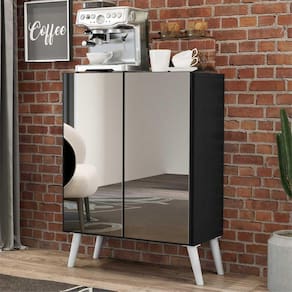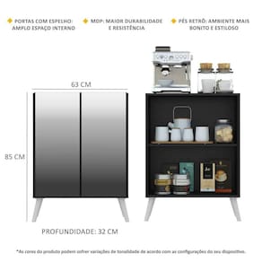 O Aparador Cantinho do Café com Espelho e Pés Retrô 2 Portas Multimóveis é produzido em MDP com acabamento acetinado (cerca de 20% de brilho), que garante maior durabilidade, facilidade na limpeza, além de um acabamento superior. Com 2 portas, possui um excelente espaço interno para organizar louças, bebidas e demais objetos (a prateleira interna suporta 8 Kg e o tampo 9 Kg). Os pés retrô, em polipropileno, dão um charme especial ao móvel deixando-o com um visual leve e permitindo você compor um ambiente com ar vintage e moderno ao mesmo tempo. Os detalhes com espelhos nas portas deixam o móvel mais requintado, e charmoso. Os espelhos são de vidro (o que evita que a imagem fique distorcida) e lapidados, ou seja, passam por um processo para que as bordas não fiquem cortantes, o que garante maior segurança. Os amantes de café poderão deixar seu cantinho mais prático e aconchegante para curtir os melhores momentos com os amigos e família, saboreando um delicioso cafezinho.