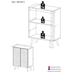 Altura: 85cm | Largura: 63cm | Profundidade: 32cm
