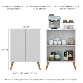 O Aparador Cantinho do Café com Pés Retrô e 2 Portas Multimóveis é produzido em MDP com acabamento acetinado (cerca de 20% de brilho), que garante maior durabilidade, facilidade na limpeza, além de um acabamento superior. Com 2 portas, possui um excelente espaço interno para organizar louças, bebidas e demais objetos (a prateleira interna suporta 8 Kg e o tampo 9 Kg). Os pés retrô, em polipropileno, dão um charme especial ao móvel deixando-o com um visual leve e permitindo você compor um ambiente com ar vintage e moderno ao mesmo tempo. Os amantes de café poderão deixar seu cantinho mais charmoso e prático para curtir os melhores momentos com os amigos e família, saboreando um delicioso cafezinho.