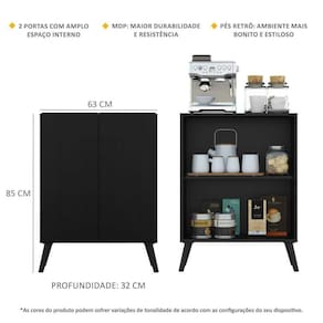 O Aparador Cantinho do Café com Pés Retrô e 2 Portas Multimóveis é produzido em MDP com acabamento acetinado (cerca de 20% de brilho), que garante maior durabilidade, facilidade na limpeza, além de um acabamento superior. Com 2 portas, possui um excelente espaço interno para organizar louças, bebidas e demais objetos (a prateleira interna suporta 8 Kg e o tampo 9 Kg). Os pés retrô, em polipropileno, dão um charme especial ao móvel deixando-o com um visual leve e permitindo você compor um ambiente com ar vintage e moderno ao mesmo tempo. Os amantes de café poderão deixar seu cantinho mais charmoso e prático para curtir os melhores momentos com os amigos e família, saboreando um delicioso cafezinho.