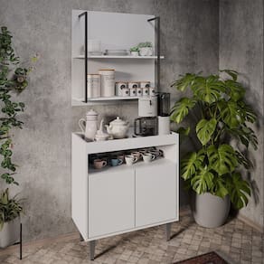 Com o Aparador Cantinho do Café e Painel 2 Prateleiras Flora M24 Branco, da Mpozenato, estilo e funcionalidade se encontram para deixar o seu ambiente acolhedor e cheio de personalidade.
