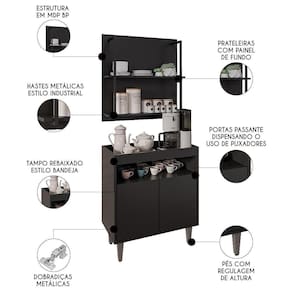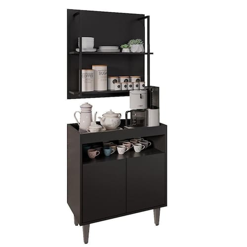 Com o Aparador Cantinho do Café e Painel 2 Prateleiras Flora M24 Preto, da Mpozenato, estilo e funcionalidade se encontram para deixar o seu ambiente acolhedor e cheio de personalidade.