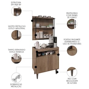 Com o Aparador Cantinho do Café e Painel 3 Prateleiras Flora M24 Freijó, da Mpozenato, estilo e funcionalidade se encontram para deixar o seu ambiente acolhedor e cheio de personalidade.