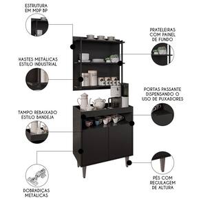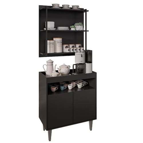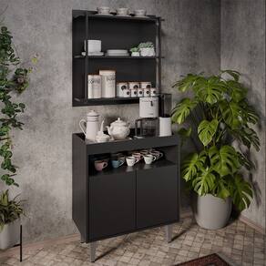 Com o Aparador Cantinho do Café e Painel 3 Prateleiras Flora M24 Preto, da Mpozenato, estilo e funcionalidade se encontram para deixar o seu ambiente acolhedor e cheio de personalidade.