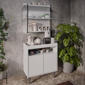 Com o Aparador Cantinho do Café e Painel 3 Prateleiras Flora Z34 Branco, da Mpozenato, estilo e funcionalidade se encontram para deixar o seu ambiente acolhedor e cheio de personalidade.
