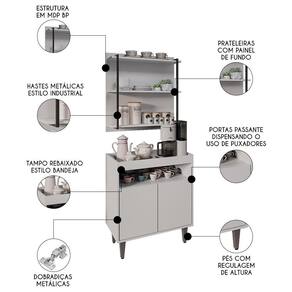Remetendo ao estilo industrial, essa prateleira com painel é sinônimo de resistência e durabilidade, ao passo que o design moderno torna o uso versátil, já que podem ser aproveitada não somente como complemento na cozinha, mas também como prateleira decorativa em diversos ambientes. Além disso, quando combinada com o aparador, a funcionalidade é otimizada. Isso porque esse balcão tem muitas faces, podendo ser adequado como apoio para louças na cozinha, como buffet compacto na sala de jantar ou até mesmo como balcão cantinho do café na sala de estar ou escritório; afinal, proporciona não somente armazenamento prático e organizado, como também toque de aconchego ao ambiente, seja ele qual for.