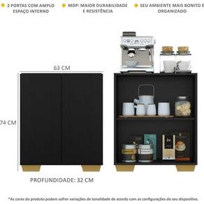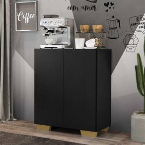 Aparador Cantinho Do Café Com Pés Quadrados e 2 Portas Multimóveis Preto natural