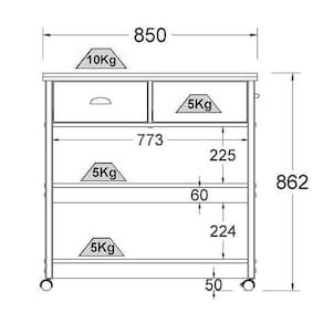 Peso Suportado: 10kg no tampo 5kg nas prateleiras e gaveta