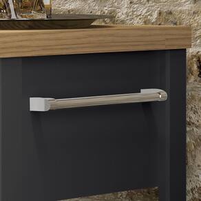- Puxador e porta-toalha metálicos.