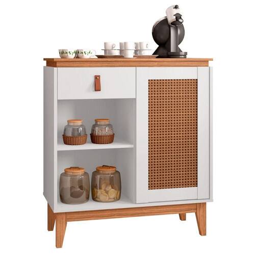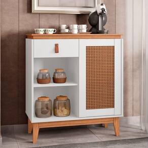 Feito em MDP/MDF. Possui 1 gaveta com corrediça telescópicas, 2 nichos e 1 porta.