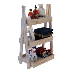 Estante arara com prateleiras e estrutura em madeira maciça de Pinus.