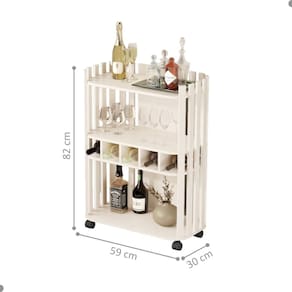 Estrutura: MDF, com adega para 5 garrafas, ripas laterais e 4 rodízios para facilitar o manuseio.