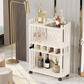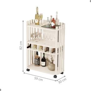 Estrutura em MDF. Conta com uma adega interna para acolher até 5 garrafas,ripas nas laterais e 4 rodizios faclitando o manuseio do produto.
