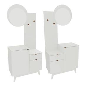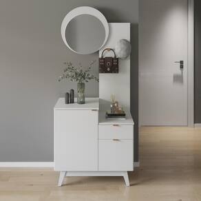 Características: - Produzido em MDP de 15/25mm, unindo leveza e robustez na medida certa. - Acabamento em pintura UV: mais resistência e beleza por muito mais tempo. - Espelho em vidro de 3mm que amplia o espaço e valoriza a iluminação do ambiente. - 2 portas e 1 gaveta para manter tudo organizado e sempre à mão. - Gaveta com corrediças metálicas, garantindo abertura suave. - 2 ganchos em aço cromado para pendurar bolsas ou chapéus: mais praticidade na rotina. - Pés no estilo retrô em PVC, que elevam o visual e facilitam a limpeza. - Puxadores metálicos práticos e minimalistas. - Montagem reversível: a espelheira e a porta podem ser montadas no lado esquerdo ou direito do móvel.