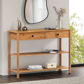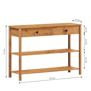 Dimensões do Produto Largura: 110 cm Altura: 77,6 cm Profundidade: 37 cm Peso: 18 Kg Materiais e Acabamento Material da Estrutura: Madeira Maciça - Finger Tipo da Madeira: Pinus Escala de Brilho: Fosco Material dos Pés: Pinus Maciço Recomendação de Limpeza: Utilize pano levemente úmido Características do Produto Quantidade de Gavetas: 2 Quantidade de Prateleiras: 2 Quantidade de Basculantes: 0 Possui Rodízio: Não Estilo: Escandinavo Ambiente Principal: Hall de Entrada Precisa de Montagem: Sim Sistema de Montagem: Minifix / Cavilhas / Parafusos Complexidade da Montagem: Médio Volumes: 01 Garantia do Fabricante: 12 meses Manual de Montagem: Sim
