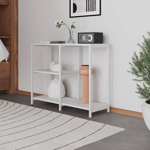 Aparador Console Industrial Artesania 95cm para Sala Hall Entrada Corredor e Decoração - Branco - Preto