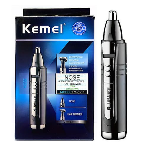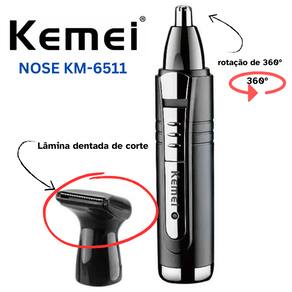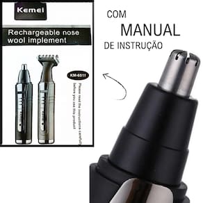 Aparador e cortador de pelos kemei km 6511O aparador e cortador de pelos da kemei, é um produto multifuncional sendo 2 em 1. Ferramenta adequada para o uso em nariz, orelha, barba e sombrancelhas. Conta com uma lâmina em aço inoxidável e rotação de 360º. Feito com um design antiderrapante para melhor fixação em sua mão.Características geraisCor: pretoVoltagem: bivoltModelo: kemei km-6511Acompanha pente para barbaRecarregávelLuz led embutidaLâmina de lavagem removível é fácil de limpar.Lâmina de aço inoxidávelRotação de 360 grausDesign antiderrapanteTipo de alimentação: recarregável (bivolt)Cor: pretoItens inclusos:1x barbeador kemei1x plug para pelos do nariz1x plug para barba1x pende com ajuste de tamanho1x mini escolva para limpeza1x cabo de força para recarga da bateriaPossui selo do inmetro ocp 0115