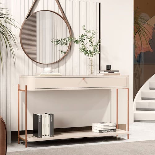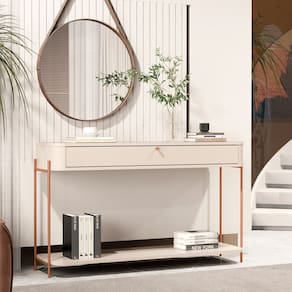 O aparador tucupí tem os cantos arredondados exclusivos da linha, base e tampo em MDF de 15mm, gaveta em MDF de 15mm com corrediças telescópicas além dos pés e puxadores em metal com design exclusivo. Acabamento: Pintura UV Acabamento da Gaveta: Pintura UV Acabamento da Prateleira: Pintura UV Acabamento dos Pés: Pintura Ambiente Principal: Sala de Estar Complexidade da Montagem: Média: pode ser montado por mais de uma pessoa e/ou necessite de maior conhecimento para montagem Cor: Off White/Bronze Cor do Produto: Off White/Bronze Cor do Tampo: Marrom Cor dos Pés: Champagne Cor Interna: Off White Escala de Brilho: Semi-Brilho Escala de Brilho da Gaveta: Semi-Brilho Escala de Brilho da Prateleira: Semi-Brilho Formato: Retangular Gaveta com Chave: Não Itens Inclusos: 1 Aparador, 1 Kit Ferragens, 1 Manual de Montagem. Linha ou Coleção: Linha 2025 Manual de Montagem e Instalação: https://cdn2.madeiramadeira.com.br/atributo/jb-bechara/2721398-5404-17407665571263.pdf Marca: JB Bechara Material da Gaveta: MDF Material da Prateleira: MDF Material do Puxador da Gaveta: Metal Material do Tampo: MDF Material dos Pés: Metal Material Principal: MDF Montagem Flex: não Necessita Montagem: Sim Origem do Produto: Nacional Pés Reguláveis: Não Peso: 23,4 kg Peso Máximo por Gaveta: 5 kg Peso Máximo por Prateleira: 5 kg Possui Adega: Não Possui Bandeja: Não Possui Possui Espelho: Não Possui Gavetas: Sim Possui Pés: 04 Possui Portas: Não Possui Prateleiras: Sim Possui Rodízio: Não Possui Vidro: Não Quantidade de Gavetas: 01 Gaveta Quantidade de Nichos: 01 Quantidade de Prateleiras: 01 Prateleira Recomendações de Uso, Manutenção e Limpeza: Na remoção da poeira utilize flanela limpa e levemente umedecida. Não exponha à luz solar e locais úmidos. Não encoste o móvel na parede para evitar transmissão de umidade. Resistente à Chuva: Não Sapatas Niveladoras: Não Sistema de Montagem: O produto será entregue desmontado, acompanhado do manual de montagem. Não oferecemos serviço de montagem. A montagem e instalação é por conta do cliente. Recomendamos a contratação de um profissional. Não nos responsabilizamos por danos decorrentes a e Suporta Até (kg): 15 kg Tipo de Corrediça da Gaveta: Metálica Telescópica Tipo de Puxador da Gaveta: Externo