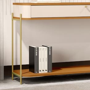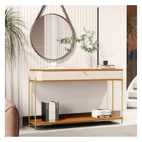 Pés e puxadores em metal com design exclusivo;