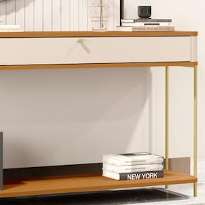 MDFO aparador tucupí tem os cantos arredondados exclusivos da linha, base e tampo em MDF de 15mm, gaveta em MDF de 15mm com corrediças telescópicas além dos pés e puxadores em metal com design exclusivo.