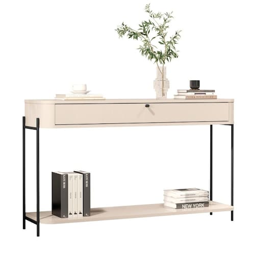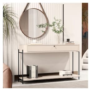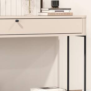 O aparador tucupí tem os cantos arredondados exclusivos da linha, base e tampo em MDF de 15mm, gaveta em MDF de 15mm com corrediças telescópicas além dos pés e puxadores em metal com design exclusivo.