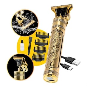 Fabricada em metal na cor dourada, essa máquina possui lâminas de titanium, garantindo durabilidade e resistência. Além disso, ela conta com uma bateria de lithium-ion de 18.500 mAh, que garante uma longa autonomia de uso. E o melhor de tudo, você não precisa remover a bateria para recarregar, pois a máquina é recarregável via USB.