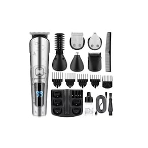 Características > Bateria Recarregável > Tempo de Carga: 8 horas > Tensão 110-240 V > Carga Rápida: 5 V/2,0 A > Frequência: 50/60 Hz > Pinos: 3, 6, 9, 12 mm > Folha Ajustável > Aço Inoxidável > Medidas: 16x4,3 x 4,1 cm > Design: 11 em 1 > Cabeças Internas CambiableSkit de recortador de barba multifuncional: projetado para um recorte preciso, o kit de recortador de barba todo em um inclui 6 cabeças de corte e uma base de suporte para uma fácil organização. También viene con 6 peines recortadores que lhe permitem controlar la longitud y el estilo de su barba, cuerpo, cara, nariz, orelhas, cejas, patillas y cuello.Nosso kit de beleza é projetado para ser completamente lavável, o que facilita sua limpeza após seu uso. A lâmina é removível e pode ser limpa com a escova incluída no conjunto.Ecrã LED e carregamento USB O ecrã LED mostra o nível da bateria e a memória que deve carregar. Bateria de íons de lítio recarregável incorporada, pode funcionar durante 90 minutos por carregamento e só demora cerca de 1,5 horas para carregar completamente. El diseño inalámbrico hace que sea fácil de usar en cualquier lugar y perfecto para viajar.Hoja de acero inoxidable autoafilable: la hoja de acero inoxidable es autoafilable con espacio libre de precisión para facilitar el corte. También son no corrosivos y prevenen la oxidación y la irritación de la piel.Diseño ergonómico con bloqueo de viaje] El mango suave y curvo se siente cómodo de sostener, y el diseño de bloqueo de presión de 3 segundos garantiza un uso más conveniente.Este kit de cuidado de barba es un gran regalo para hombres, pais, maridos, namorados e filhos.