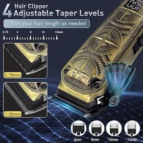 - Motor de alto desempenho e lâminas de aço inoxidável duráveis: Este aparador de cabelo e aparador de cabelo tem um motor potente e lâminas afiadas de aço inoxidável para cortes de cabelo rápidos e seguros sem puxar/beliscar. Ao criar uma variedade de penteados, eles não queimam sua pele devido à geração de calor quando em uso, proporcionam uma experiência de corte de cabelo confortável e econômica.