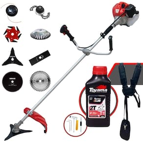 Roçadeira Lateral ANMAX CG430P À Gasolina 2 Tempos 43cc 2HP + Faca 3 Pontas 255m + Faca 40 Dentes 255mm + Faca 80 Dentes 255mm + Trimmer + Escova Rotativa 38 cerdas + Faca 6 Pontas + Óleo Toyama FG50 500ml