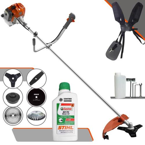 Com guidão ergonômico lateral, permite um alcance amplo e maior mobilidade, capaz de aumentar a produtividade diária. Possui motor 2 tempos á gasolina, de 51,6 Cilindradas (52cc) 9.000 de rotação 2,0 HP de potência que proporcionam maior performance e economia na operação. Seu conjunto de acessórios inclui kit de ferramentas, cinto de suporte duplo almofadado, carretel de nylon e lâmina de corte 3 pontas.
