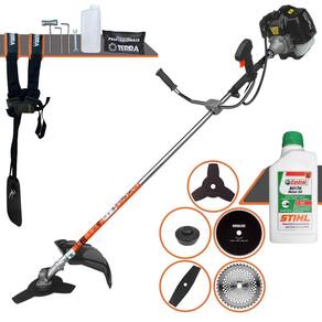 Roçadeira Lateral Terra GRH-430 Black À Gasolina 2 Tempos 43cc 1,7HP + Faca 2 Pontas 330mm 2,7mm + Faca 40 Pontas 255mm 2mm + Faca 80 Pontas 255mm 1,5mm + Escova Rotativa 200mm 38 Cerdas + Óleo Stihl 500ml