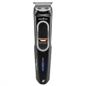 Características gerais: Laminas laváveis; Lâminas em aço inoxidável; Bivolt automático; Luz indicadora de nível de bateria; Luz indicadora de funcionamento; Funcionamento com e sem fio; Carrega na base; Tempo de carga de 90min; Autonomia de uso de 90min; Pode ser utilizado na pele seca, úmida e molhada; Suporte para acessórios; Aparador de nariz e orelha; Pentes de corte nos tamanhos 1mm, 2mm, 5mm e 6mm; Escova para limpeza das lâminas Óleo lubrificante; Bateria de lítio. Pentes de corte nos tamanhos 1mm, 2mm, 3mm, 5mm e 6mm. Aparador de nariz e orelha. Base carregadora. Óleo lubrificante. Escova para limpeza. Cor produto: Preto Material / composição: Metal e plástico. Capacidade total e útil: N/A Tamanho do cordão: 90 cm Tomada -A-: 0,2A Pinos -2 ou 3-: 2 Dados Energéticos Informações Logísticas Informações Fiscais Tensão -V-: 127 ou 220 Potência -W-: 5 Consumo -kWh-: 0,005