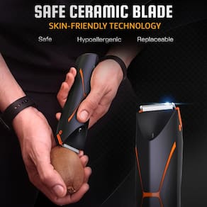 - Cuidado especial: o aparador de bolas masculino possui lâminas anticorte de cerâmica para higiene e nitidez, projetadas para minimizar cortes, cortes e queimaduras. Diga adeus ao desconforto e à dor dos barbeadores tradicionais. O motor de alta potência com uma velocidade de lâmina de até 7000 r/min pode proporcionar um corte mais rápido com o mínimo de ruído. Basta usá-lo com confiança para facilitar a manicure sua masculinidade.
