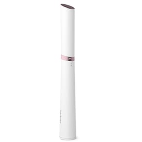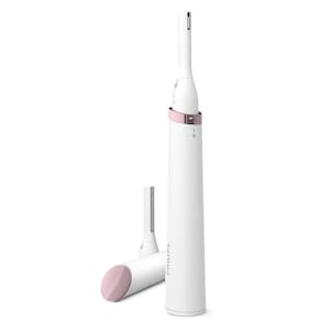 Aparador portátil de pelos faciais Philips para retoques rápidos, apara suavemente os pelos mais finos do seu rosto, onde quer que você esteja. Ele vem com duas cabeças, uma aparadora e cabeça raspadora, contém 2 pentes para modelar a sobrancelha e uma escova de limpeza para maior higiene. Modelo compacto, permite que você se mantenha impecável em todos os lugares.
