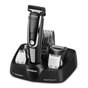 Mantenha o visual impecável com o Aparador de Pelos SuperGroom BG-05 da Mondial. Um aparelho completo com 11 funções para aparar cabelo, barba, bigode e pelos do corpo. Acompanha 5 cabeças de corte, 6 pentes ajustáveis (3 a 15 mm) e micro barbeador, ideal para acabamento preciso. Suas lâminas em aço inox proporcionam corte rente e suave, com alta durabilidade. O sistema sem fio oferece até 90 minutos de autonomia e a base organizadora mantém tudo no lugar, funcionando também como carregador.