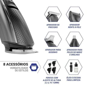 Imagine um aparador com 8 acessórios que facilita o cuidado com seu corpo de maneira prática e eficiente. É o Aparador de Pelos Philco 8 Acessórios PAPE01 Bivolt! O Aparador de Pelos Philco PAPE01 contém lâminas laváveis em cerâmica, o que também garante um corte suave e preciso, além de facilitar na manutenção e higiene dos acessórios. Perfeito para barba, cabelo, bigode, nariz, orelha, costeleta, sobrancelha e corpo, o Aparador de Pelos Philco PAPE01 também conta com pentes com ajuste na altura de corte, prática base de apoio para guardar de forma organizada os acessórios e realizar a recarga do aparador. Com carregamento USB, o tempo de carga e autonomia de uso é de 2 horas. Funciona com e sem fio e pode ser utilizado na pele seca, úmida e molhada. De forma rápida e prática, mantenha o cuidado com o seu corpo com o Aparador de Pelos Philco 8 Acessórios PAPE01 Bivolt!