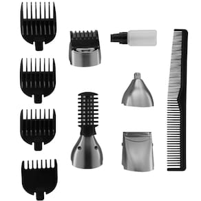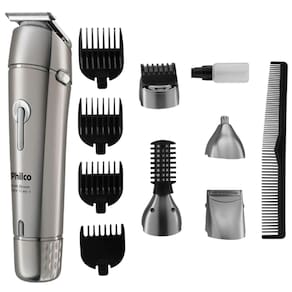 Especificações Técnicas: Potência: 3W; Marca: Philco; Bivolt Automático; Lâminas laváveis; 5 cabeças para 5 tipos de corte; Lâminas de aço; Funciona sem fio; Carrega na base; Tempo de carga de 8h; Autonomia de uso de 45min; A prova d’água; Pode ser utilizado na pele seca, úmida e molhada; Suporte para acessórios; Óleo lubrificante e pente; Acessório para corte de precisão; Acessório para bigode, barba e costeletas; Acessório rente a pele; Acessório para o corpo; Acessório de nariz e orelha; Pentes para corte nos tamanhos 3, 6, 9 e 12mm para o cabelo; Pentes para corte nos tamanhos 2,4,6 e 8mm para barba; Pentes para corte nos tamanhos 3, 6 e 9mm para o corpo;